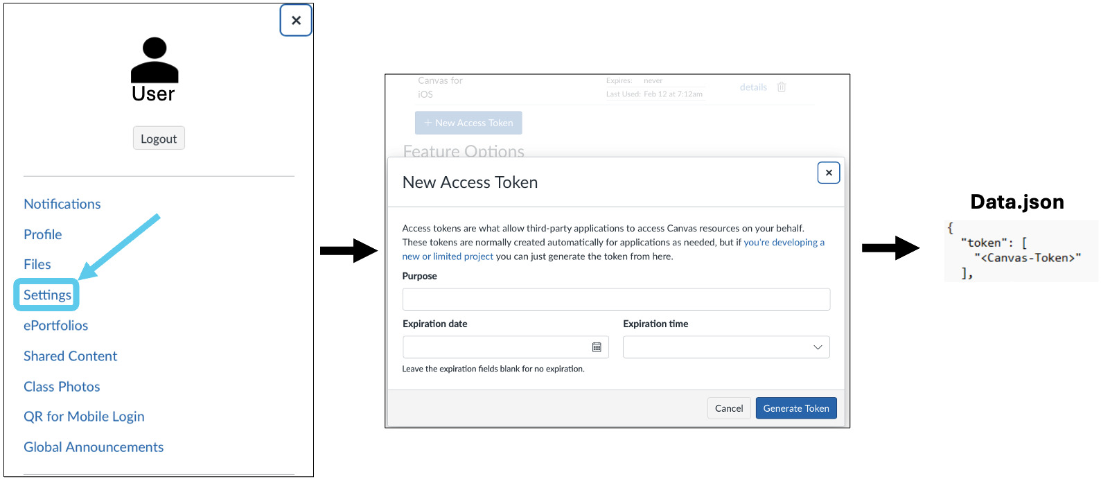 The first step in implementing the AchieveUp framework is to obtain a user token from the Canvas LMS. This token enables AchieveUp to perform API requests and collect data, thereby facilitating the implementation of the micro-credentialing toolset. Furthermore, presented within Figure 12, a step-by-step process is presented in order to extract an Access Token within the Canvas LMS website.