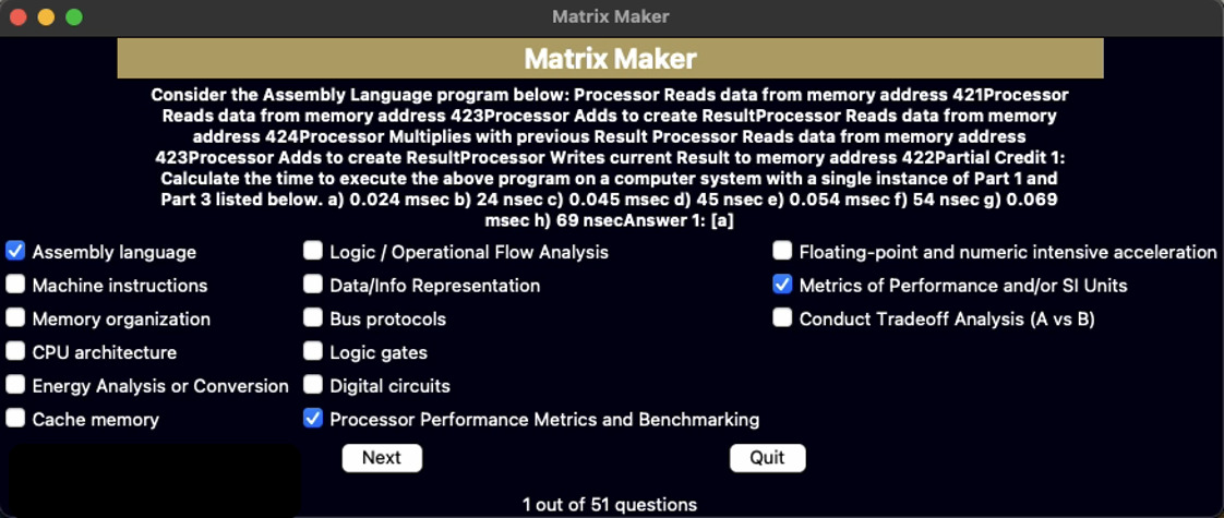 Once the token is provided and the list of skills is specified, the user runs the MatrixMaker application to tag the questions within the assessment as presented in Figure 10 and 14. The MatrixMaker application enables instructors to identify and assign skills to student responses, thereby providing a comprehensive view of student skillsets.